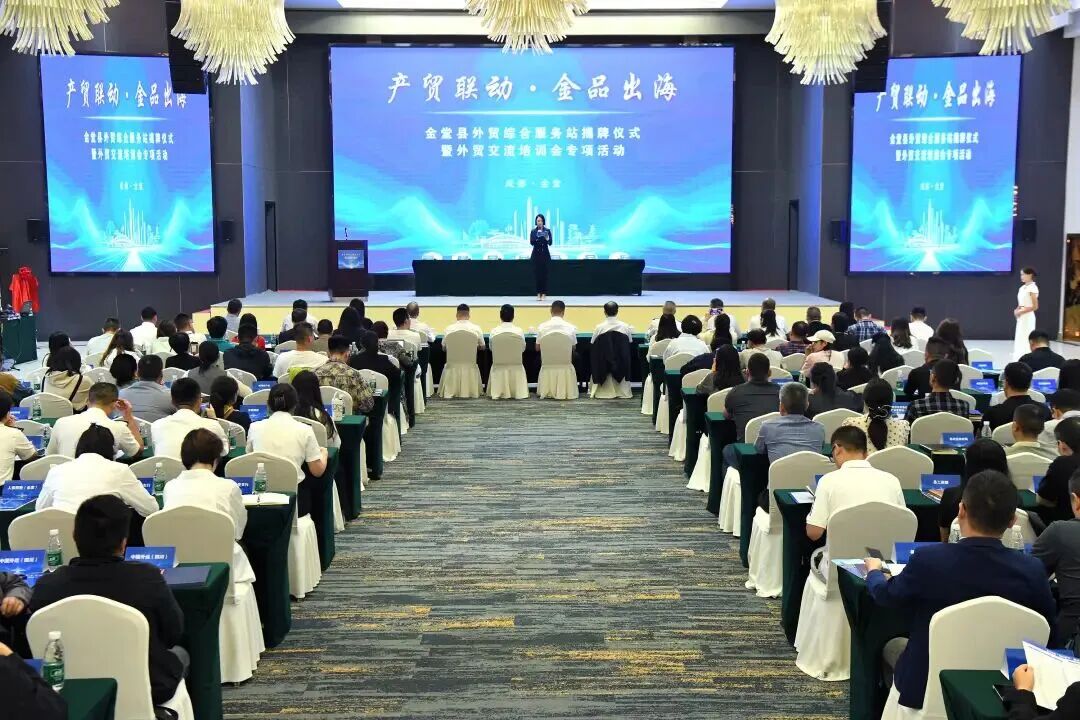 9月22日,在四川省商务厅、成都市商务局的指导下,金堂县外贸综合服务站揭牌仪式暨“产贸联动·金品出海”外贸交流培训会如期举行,标志着金堂县外贸服务体系迈上新台阶,为本地企业开拓国际市场注入强劲动能。