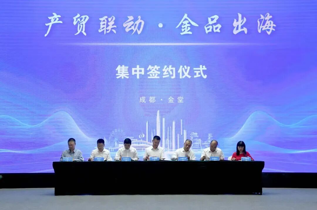 四川省机械进出口公司、四川花园水城城乡产业发展投资开发有限责任公司、金堂县商贸服务业服务中心三方携手达成合作协议。构建了“专业外贸公司+地方产业平台+政府服务机构”的创新合作模式,旨在充分发挥各自在进出口expertise、地方产业资源整合及政策服务引导方面的独特优势,共同推动金堂县外贸产业集聚与升级,助力地方产品与国际市场高效对接,激发区域外贸增长新活力。