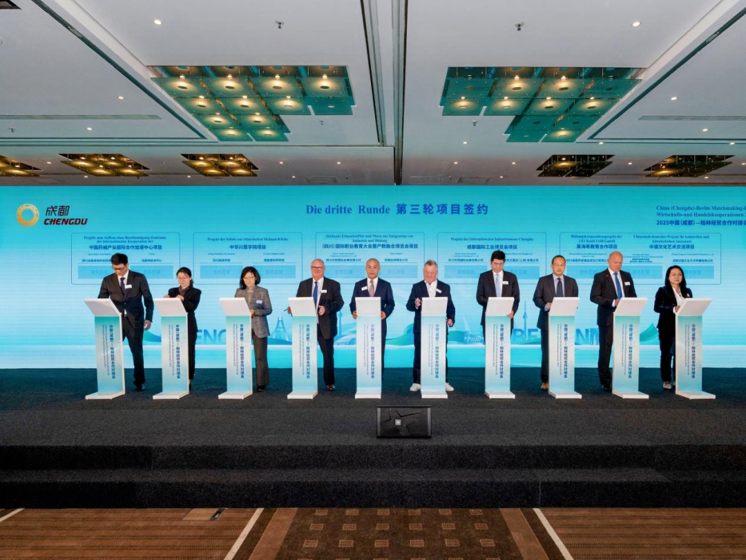 10月15日,以“展贸联动・共拓未来”为主题的2025中国(成都)—柏林经贸合作对接会在德国柏林举行,会上发布成都经贸合作机会清单,启动成都在欧经贸服务站,吸引宝马、DHL、达能德国公司、洛克科技锂业、柏林国际展览集团、汉诺威展览集团等近百家德国行业头部企业参会,涵盖国际贸易、国际物流、展会及科技等多个领域,并促成15个经贸合作项目集中签约,总金额达81亿元人民币。