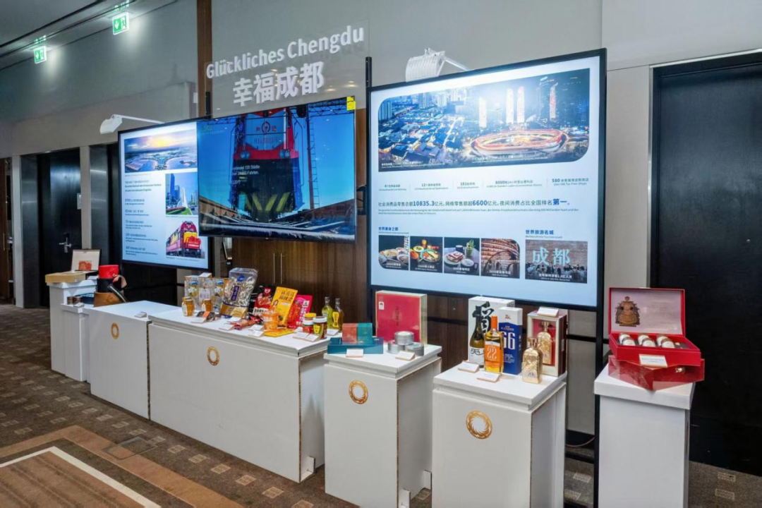 同期举办配套活动成都—柏林经贸会展主题展,围绕“公园城市”“幸福成都”“创新之城”等展示空间,以图片、视频和实物展品进行展示,展现成都对外开放成果与优越的营商环境,彰显成都作为国家创新型城市的实力。